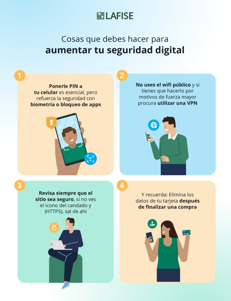 - Si debes usar Wi-Fi público por fuerza mayor, asegúrate de tener activada una VPN (Red Privada Virtual).